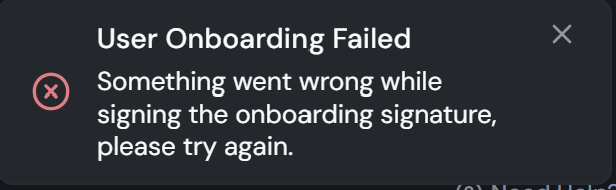 <figure><img src="https://1758625502-files.gitbook.io/~/files/v0/b/gitbook-x-prod.appspot.com/o/spaces%2Ff0258RL5jITQsHj6Pm47%2Fuploads%2FzzNiMgFdROyu8f7gfJVa%2FOnboarding3.png?alt=media&#x26;token=6e9b8841-7a79-4223-b2e4-f2c7ff2a61b6" alt="" width="308"><figcaption><p>Onboarding Failure</p></figcaption></figure>